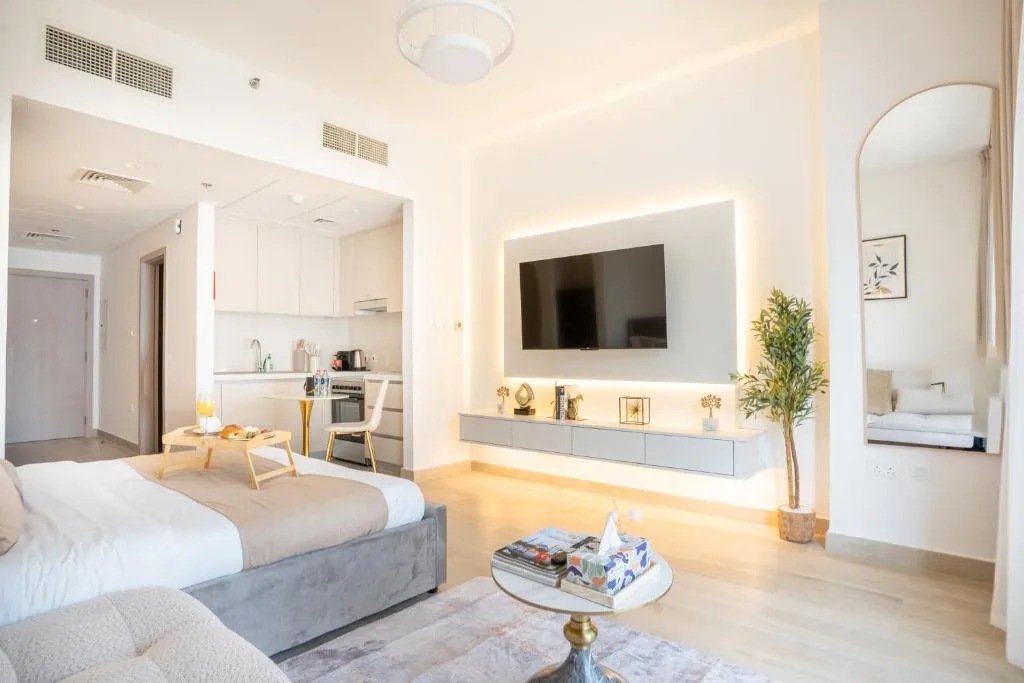Lo Chic Studio al Water’s Edge offre un soggiorno pratico e confortevole nel cuore dell’isola di Yas, con una terrazza privata che affaccia direttamente sul canale, ideale per godersi panorami rilassanti tra le acque e gli yacht. Il residence include parcheggio interno gratuito, accesso diretto alla piscina esterna riservata agli ospiti e ascensori per agevolare gli spostamenti nei due edifici del complesso. Al piano terra è disponibile anche uno sportello front desk attivo 24 ore su 24 per assistenza continua durante il soggiorno. La posizione strategica consente di raggiungere in auto l’aeroporto internazionale Zayed in soli sei minuti percorrendo cinque chilometri lungo la strada principale, mentre il celebre circuito delle corse Formula 1 di Yas Island si trova a pochi minuti ancora più vicini. A tre chilometri invece sorge Dynamite Galach, rinomato ristorante specializzato in piatti mediorientali e internazionali, raggiungibile in appena cinque minuti di guida. Per chi desidera una pausa caffè veloce o un lavoro da remoto, Caribou Coffee dista solo tre chilometri ed è accessibile in tre minuti di automobile. Infine, la spiaggia pubblica di Yas Beach si trova a circa quindici minuti di percorso automobilistico attraverso strade secondarie ben tenute.